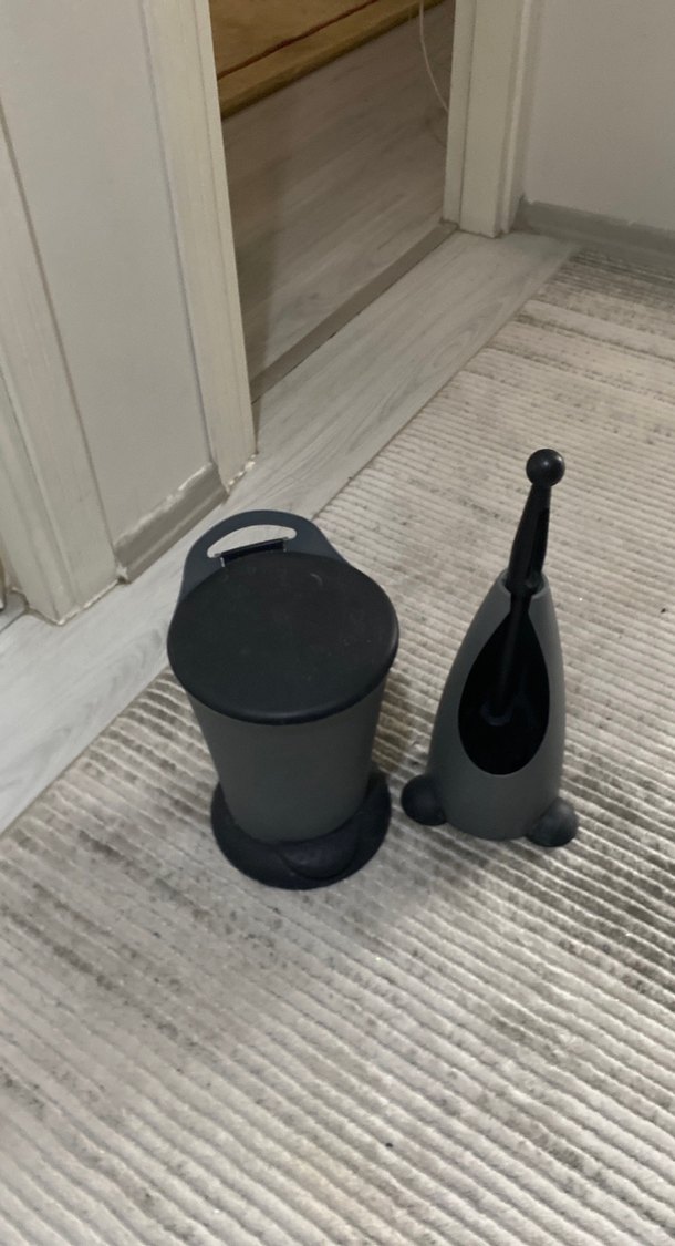 Kapaklı ve elde taşıma saplı siyah çöp kovası, kolay açma için pedallı tasarıma sahip. Küçük alanlar için uygundur. ️