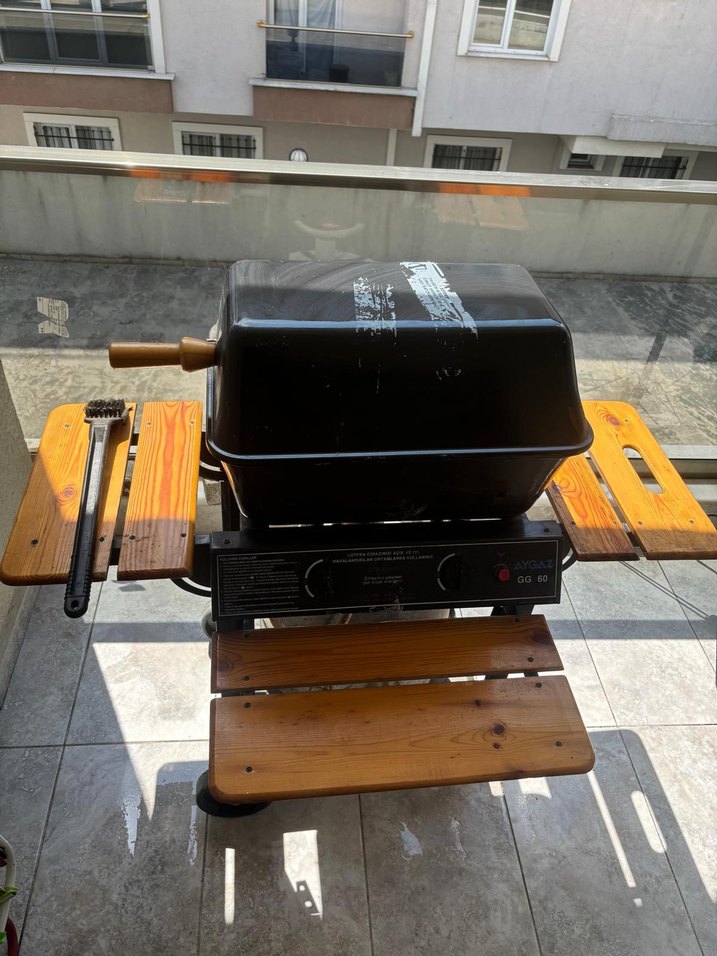 Ahşap kulplu, yan raflı siyah taşınabilir ızgara ve fırın. Temizlik fırçası ile birlikte. büyük tüple çalışıyor çok medern kullanisli taşınma sebebiyle satıyoruz