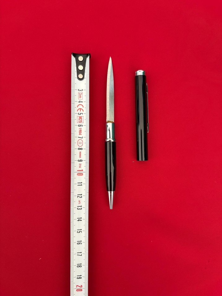 Siyah kapaklı, tırtıklı keskin bıçağa sahip kalem. Yaklaşık 15 cm uzunluğundadır. ️