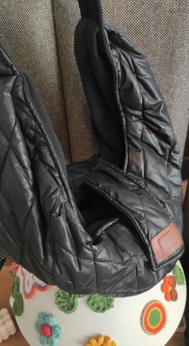 Siyah kapitone detaylı köpek kedi taşıma çantası kanguru
