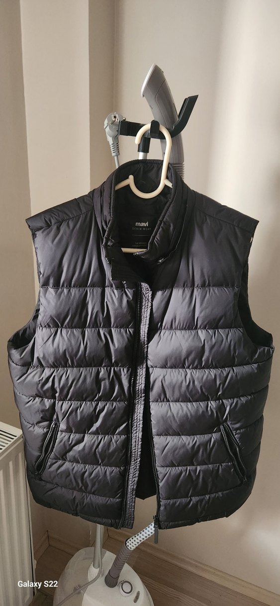 Yüksek yakalı, tokalı ve siyah renkte, kapitone desenli, normal boyda, dar kesim yelek. Yumuşak ve sıcak kumaştan, günlük kullanıma uygun.