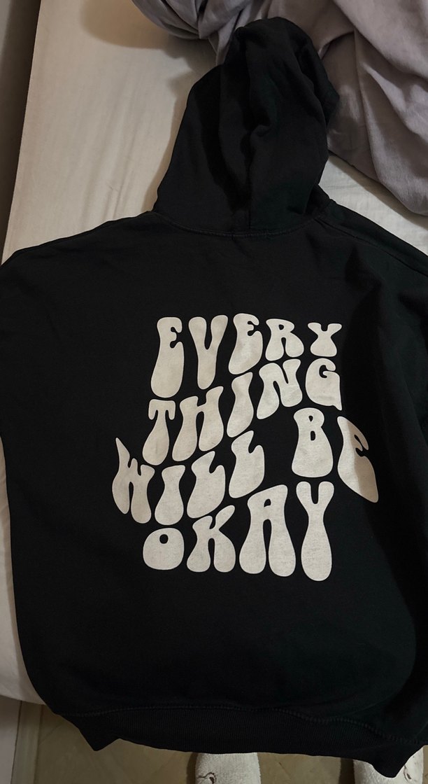 Siyah kapüşonlu arkası ve önü yazıllı sweat