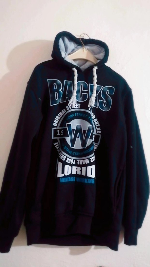 Siyah Kapüşonlu Baskılı Erkek Sweatshirt