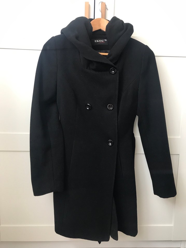 Önü kapalı ilken iki koltuk arası 45 boyu omuzdan 81 cmdir. Siyah kaban, kapüşonlu ve çift düğmeli tasarıma sahiptir, klasik ve sıcak bir dış giyim seçeneğidir.