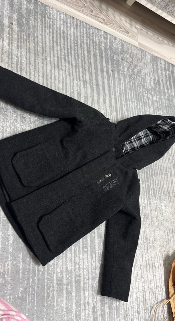 Erkek çocuk kaban sıcak tutar yeğenim 5 yaşına kadar giydi temiz ürün #erkekçocukkaban #çocukkaban #kaban Siyah renkli, kapüşonlu erkek çocuk kabanı, fermuarlı ve notched lapel yaka detayına sahiptir. Yumuşak ve sıcak kumaştan, regular fit kesimlidir.