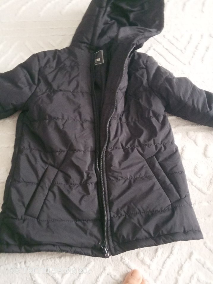 Siyah, kapüşonlu ve fermuarlı bu erkek çocuk kabanı, yüksek yakalı ve dar kesimdir. Sokak stili için uygun, desensiz ve yumuşak dokuludur.