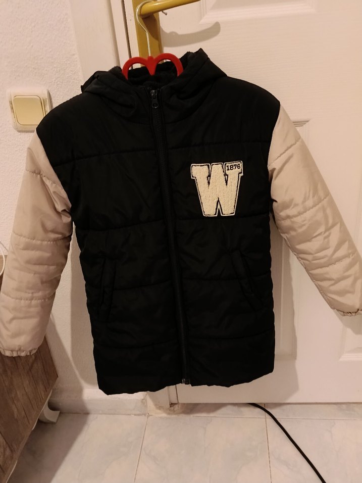 Siyah gövde ve bej kollarıyla, çıtçıtlı ve kesimli erkek çocuk montu. Yumuşak ve sıcak kumaştan, gündelik sokak stili için uygundur.