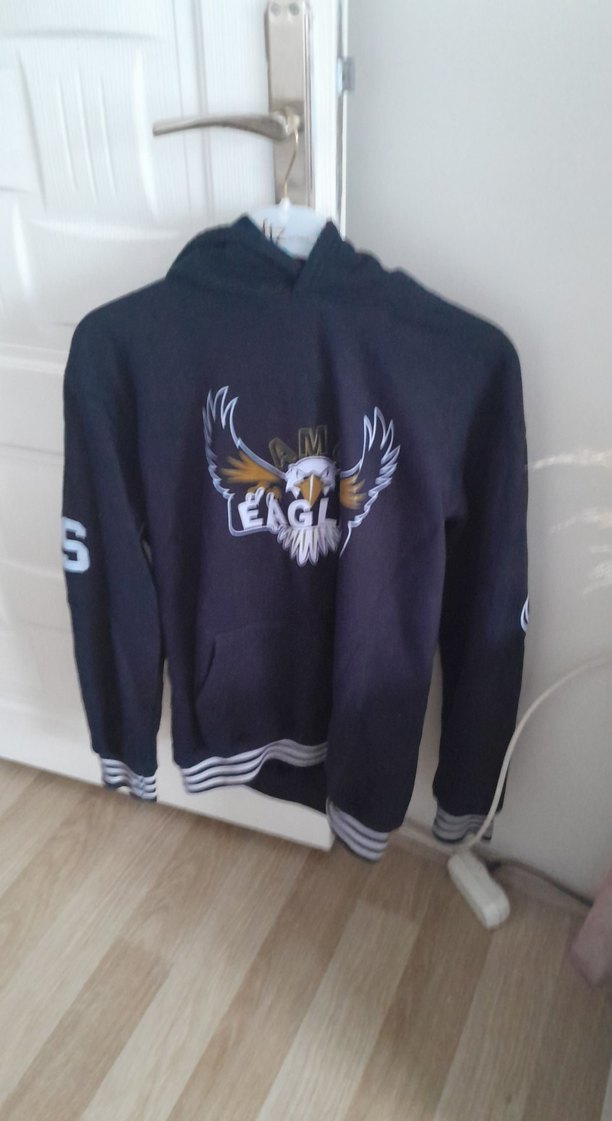Siyah renkli kapüşonlu, uzun kollu ve bol kesim erkek çocuk sweatshirtü. Baskılı kartal deseni ve bağcıklı detaylara sahip, yumuşak ve sıcak kumaştan üretilmiştir.