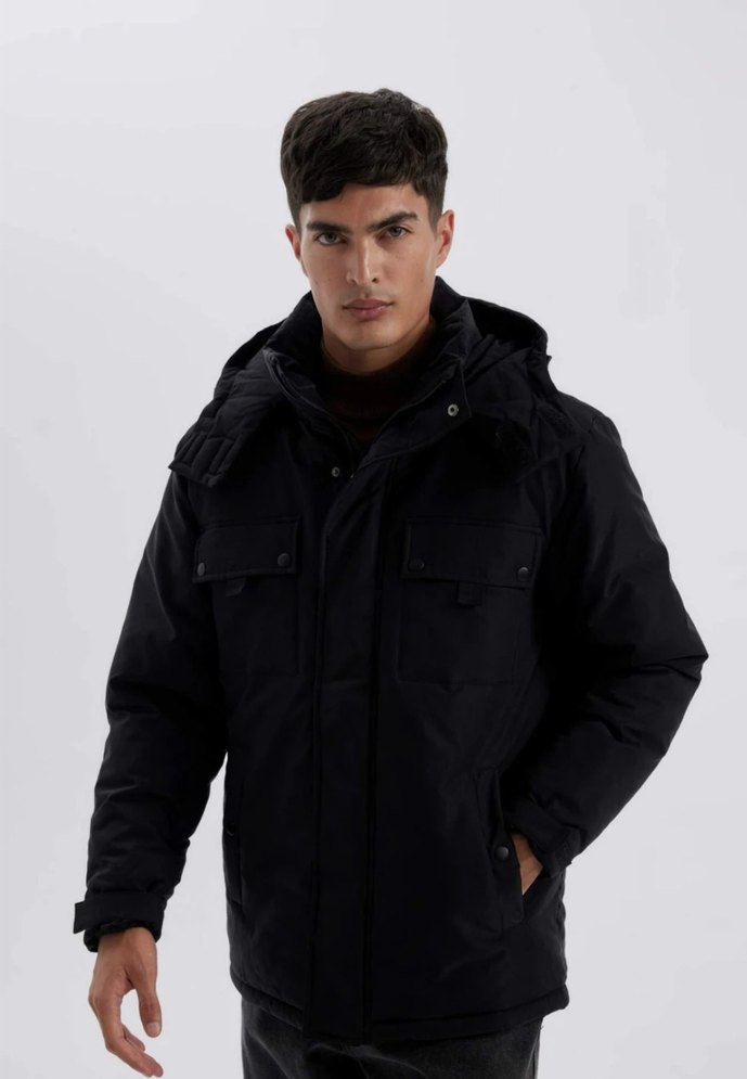 Siyah Kapüşonlu Erkek mont