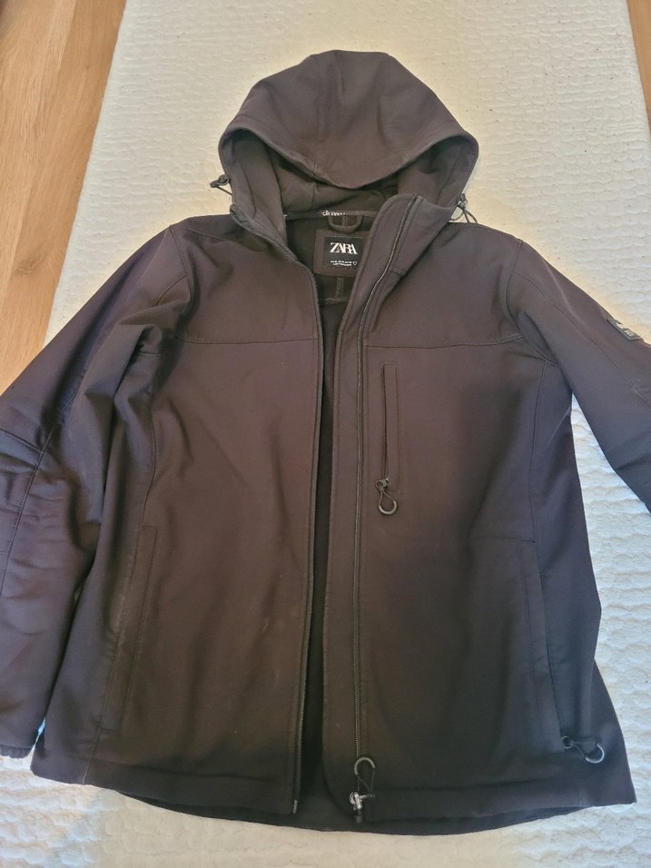 Siyah renkte, kapüşonlu ve uzun kollu erkek mont. Yumuşak ve sıcak fleece kumaştan, fermuarlı cepler ve ön fermuar içerir. Günlük kullanıma uygun, dar kesim. Sadece fermuarınin başı değişmeli bunun dışında sorunsuzdur. Renk solması yoktur. Fit ve hoş durur. Boy uzunlugu 66 cm. iki kol arasi 54 cm.