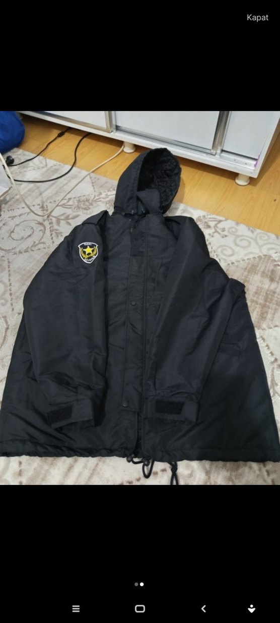 Siyah kapüşonlu erkek mont, bol kesim, kürklü detaylı ve uzun kolludur. Normal midi boyda, desen içermeyen sokak stili için uygundur.