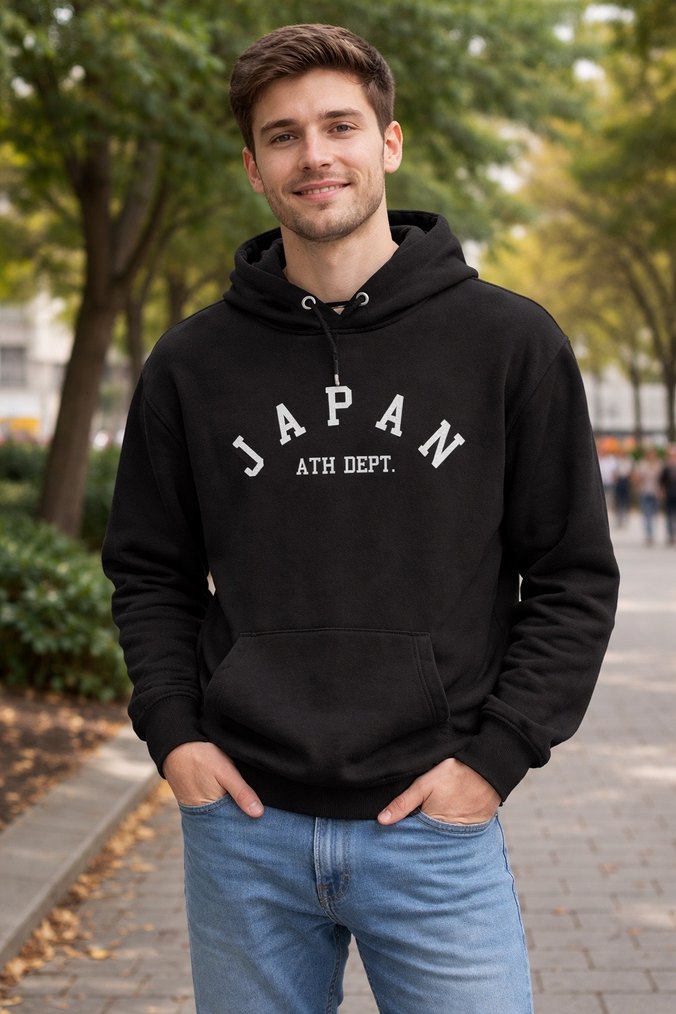 Siyah Kapüşonlu Erkek Sweatshirt