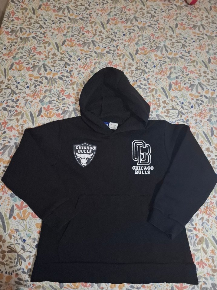 Siyah kapüşonlu, uzun kollu ve bol kesim erkek sweatshirt. Chicago Bulls baskılı ve fermuarlı detaylı, yumuşak ve sıcak kumaştan üretilmiştir.