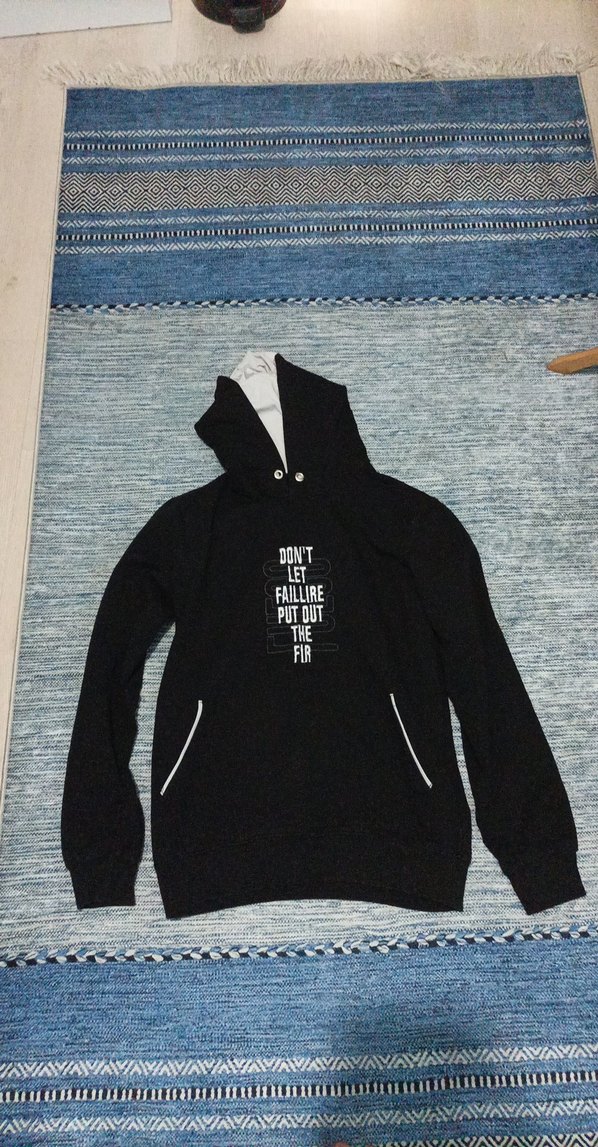Yumuşak kumaştan, kapüşonlu ve fermuarlı siyah erkek sweatshirtü. Uzun kollu, bol kesim ve baskılı detaylı, rahat sokak stili için uygundur.