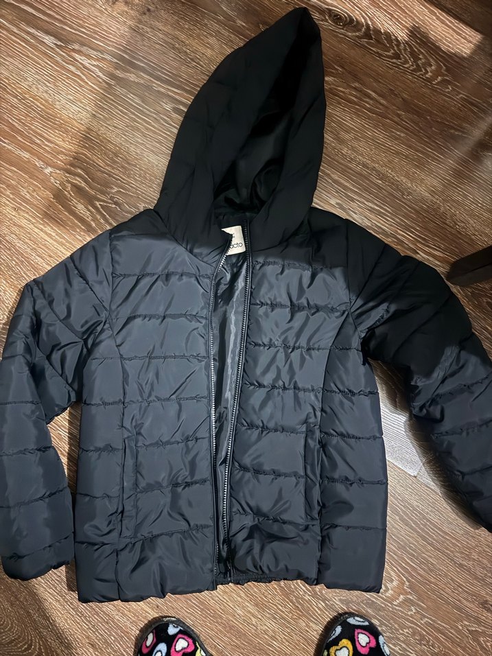 Siyah, kapüşonlu ve fermuarlı, yumuşak ve sıcak dokulu mont . Düz, sokak stili ve notched lapel yaka detaylıdır.