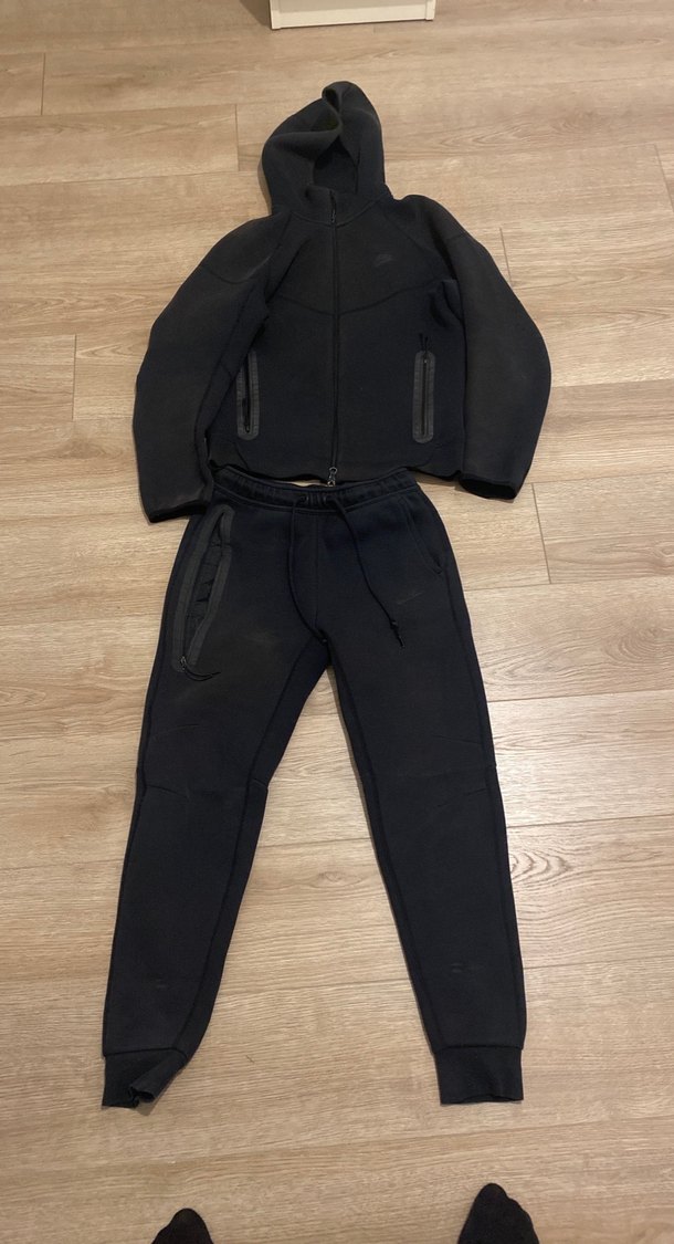 Siyah kapüşonlu fermuarlı üst ve cepli alt pantolondan oluşan erkek eşofman takımı. Rahat ve sıcak tutan kumaş kullanılmış.