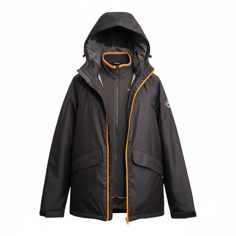 Siyah Kapüşonlu Fermuarlı Erkek Mont