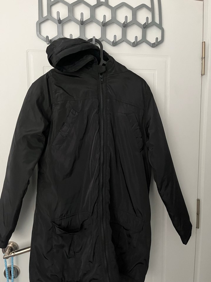 Yumuşak ve sıcak kumaştan yapılmış, siyah, fermuarlı, kapüşonlu ve yüksek yakalı erkek çocuk montudur. Midi boyda ve dar kesim, dış mekan için uygun. Küçük geldiği için satıyorum 2 defa giyilmemiştir.