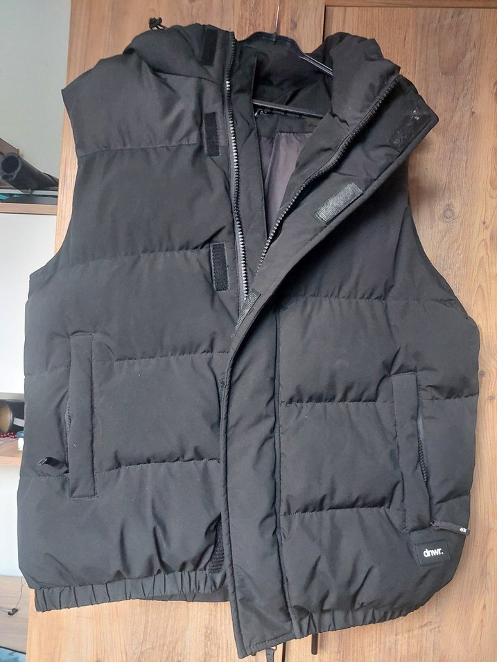Siyah renkte, yüksek yakalı ve fermuarlı, yumuşak ve sıcak kumaştan yapılmış erkek yeleği. Rahat kesimi ve normal boyuyla günlük sokak stiline uygun. zara orjinal model 2 kez giyildi