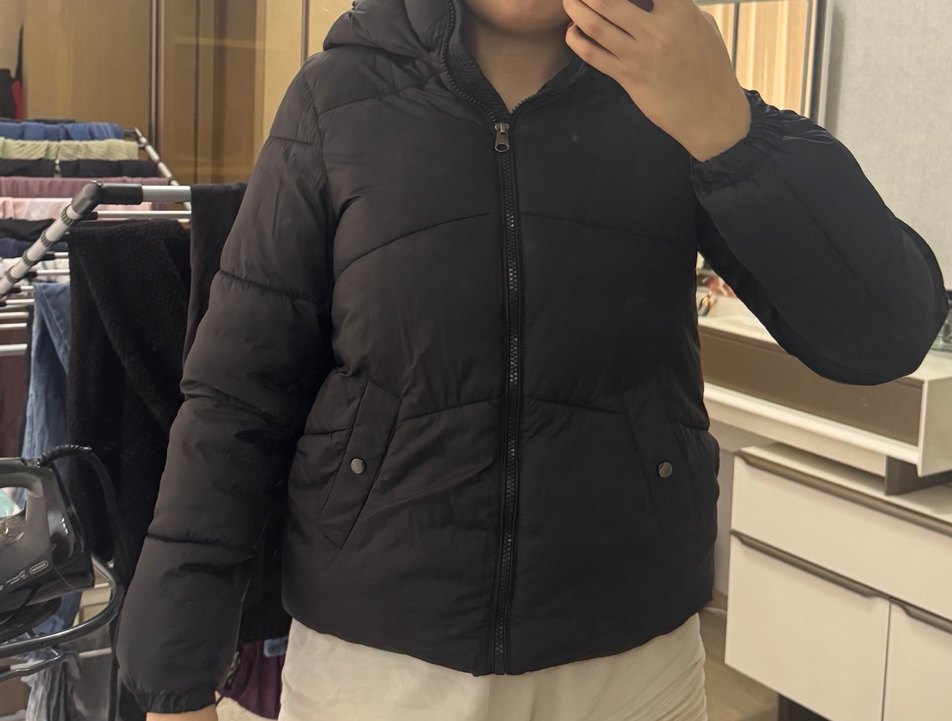 Siyah, kapüşonlu fermuarlı ve uzun kollu, yumuşak ve sıcak kumaştan yapılmış, rahat kesimli kadın kışlık mont. Sokak stiline uygun ceplidir.