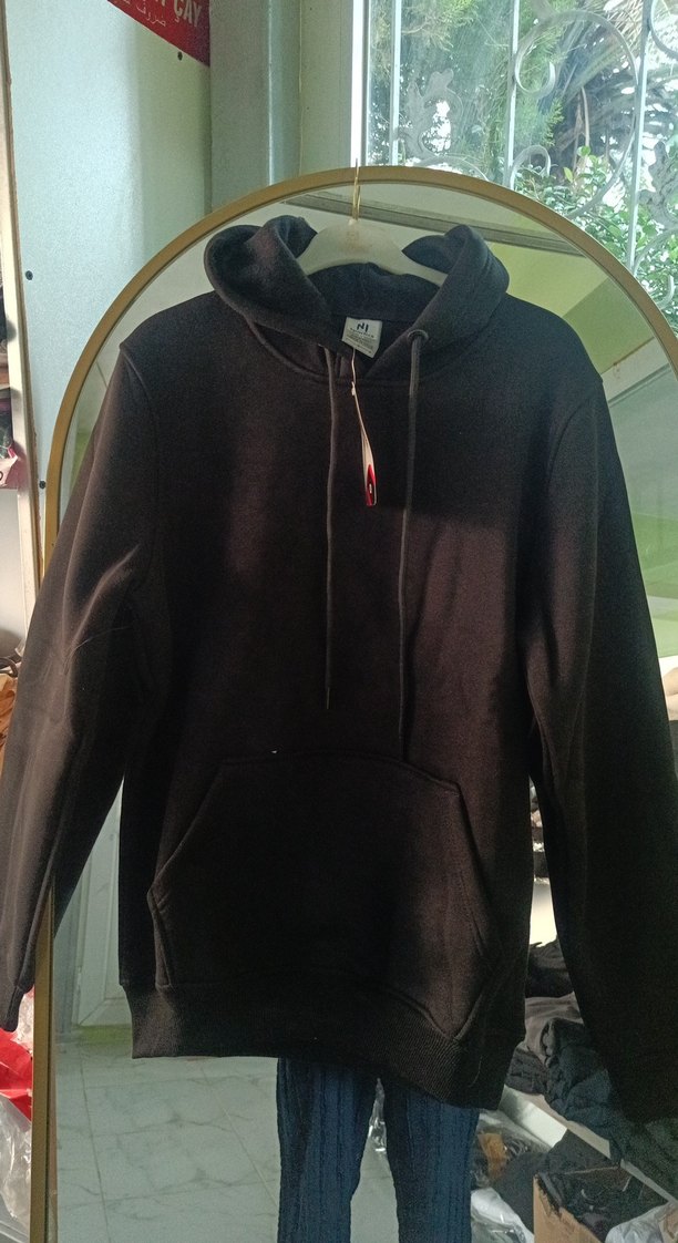 Siyah kapüşonlu, fermuarlı, uzun kollu ve bol kesim kadın sweatshirt. Yumuşak ve sıcak kumaştan, günlük rahat kullanım için uygundur.