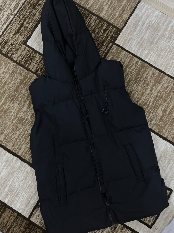 Siyah, kapüşonlu ve fermuarlı bu kolsuz yelek, yumuşak ve sıcak kumaştan yapılmıştır. Trendy ve günlük kullanıma uygun, midi boy ve vücuda oturan kesimdedir.