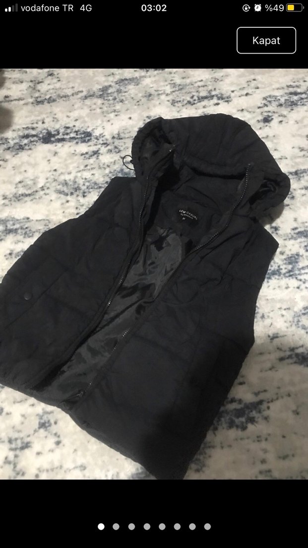 Siyah renkli, kapüşonlu ve fermuarlı bu kadın yeleği, yüksek yakalı ve kolsuzdur. Rahat ve şık bir görünüm sunar. Sorunsuz 34 beden kullanmadığım ürünleri satıyorum eksiklerimi alacağım destek olursanız sevinirim