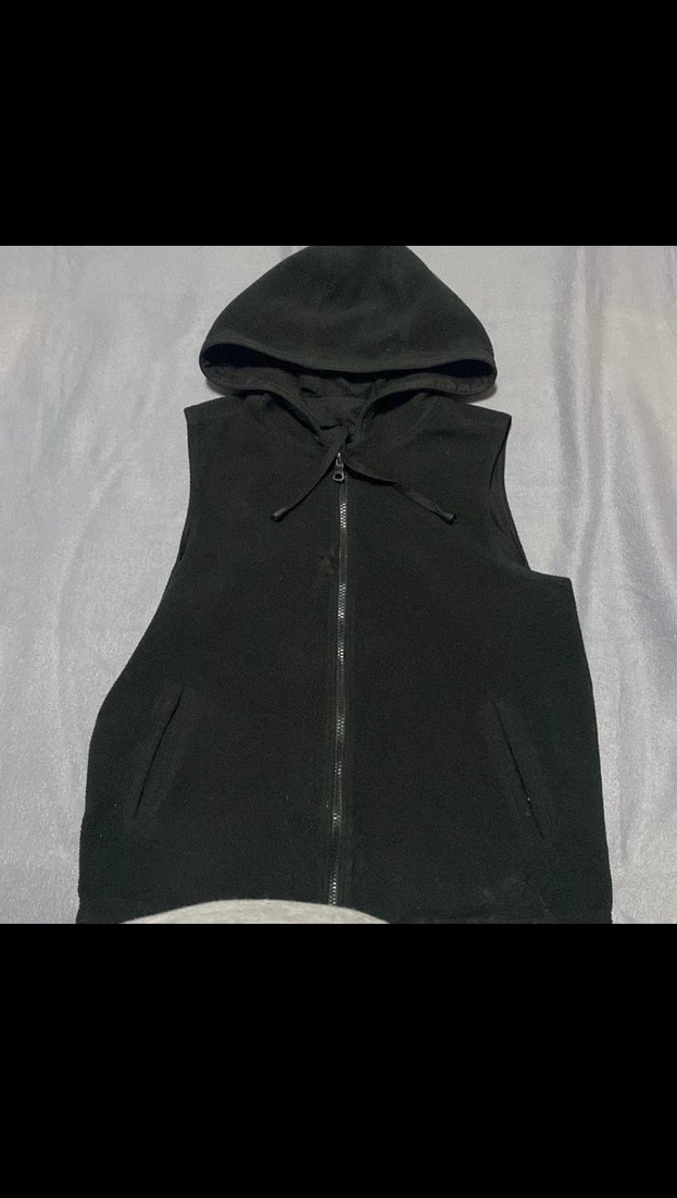 Yüksek yakalı, fermuarlı ve kolsuz siyah yelek. Yumuşak ve sıcak kumaştan, dar kesim ve normal boyda, günlük sokak tarzına uygun. (cift taraflı bazı yerlerde eskimeler vardır)