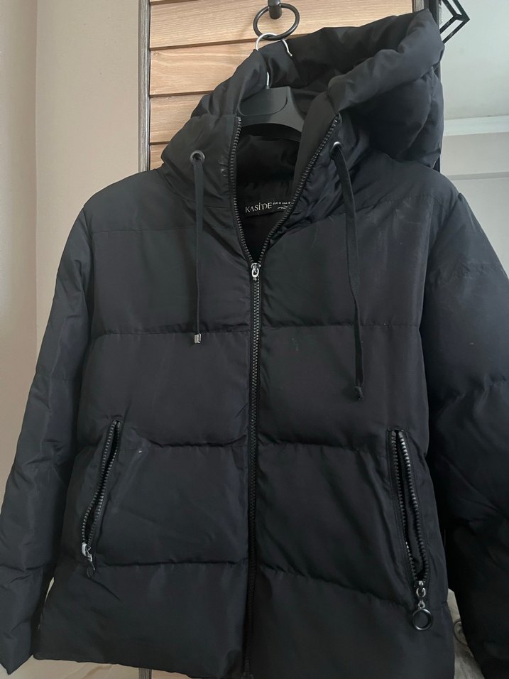 Siyah Kapüşonlu Fermuarlı Kısa mont