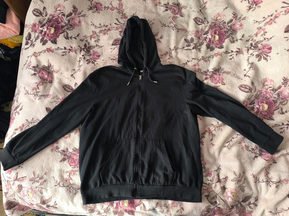 Siyah kapüşonlu fermuarlı polar ceket,bol kesim ve uzun kollu, günlük rahat kullanım için uygundur.