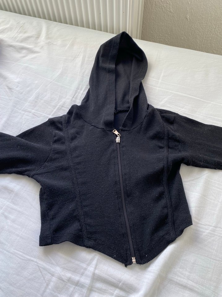Siyah Kapüşonlu Fermuarlı spor ceket