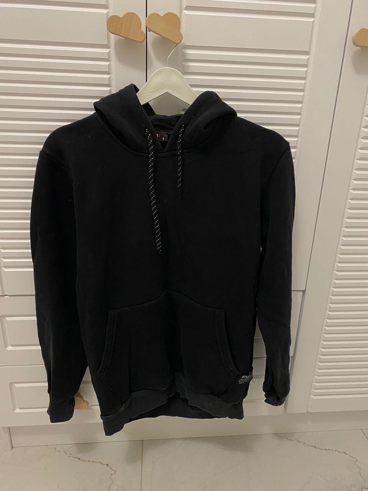 Siyah kapüşonlu, fermuarlı ve ince kesim sweatshirt. Uzun kollu, orta boy uzunlukta, yumuşak ve sıcak kumaştan üretilmiştir.