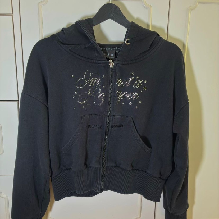 Siyah Kapüşonlu Fermuarlı Sweatshirt M