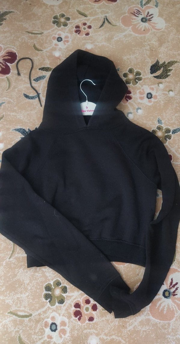 Siyah Kapüşonlu Kadın crop Sweatshirt