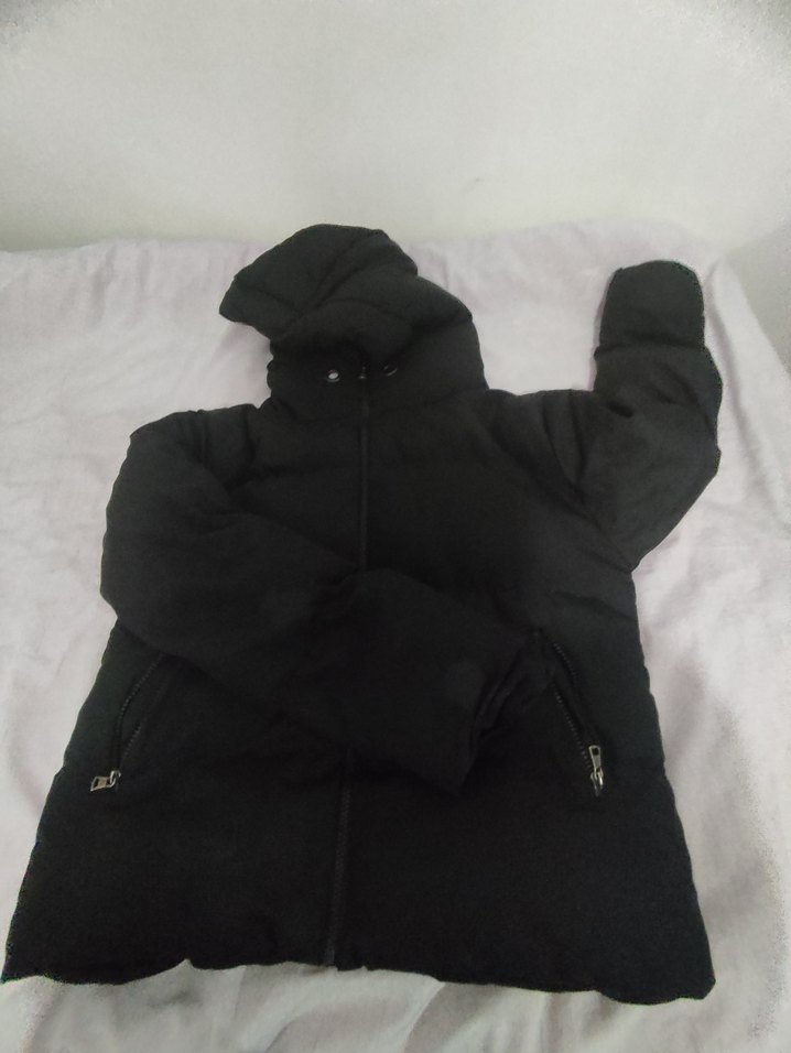 Bu siyah kapüşonlu kadın kış montu, yüksek yakalı ve fermuarlı ceplidir. Normal boyda ve uzun kolludur, yumuşak ve sıcak kumaştan yapılmıştır. ürün zara değildir