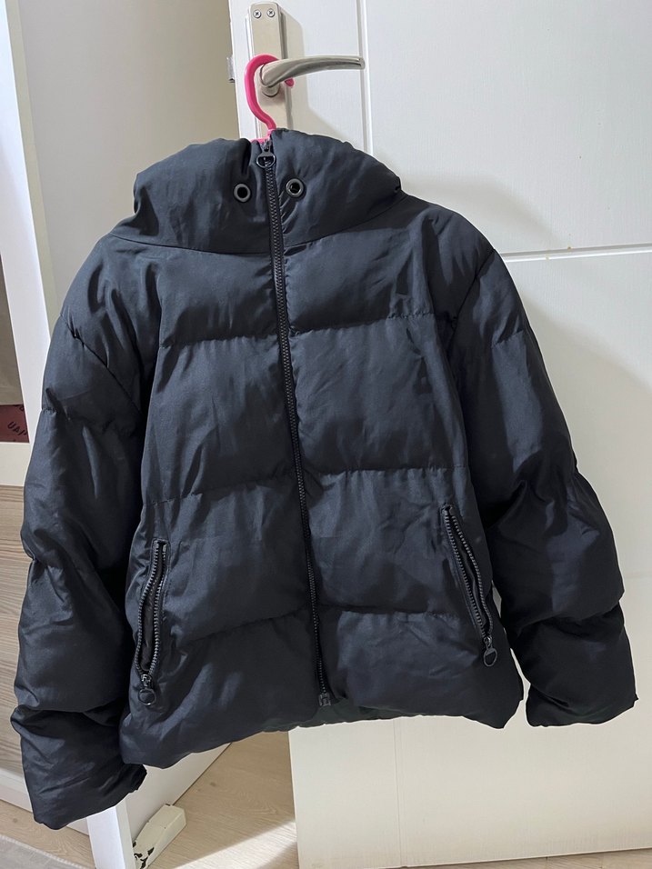 Siyah Kapüşonlu Kadın Kısa Mont