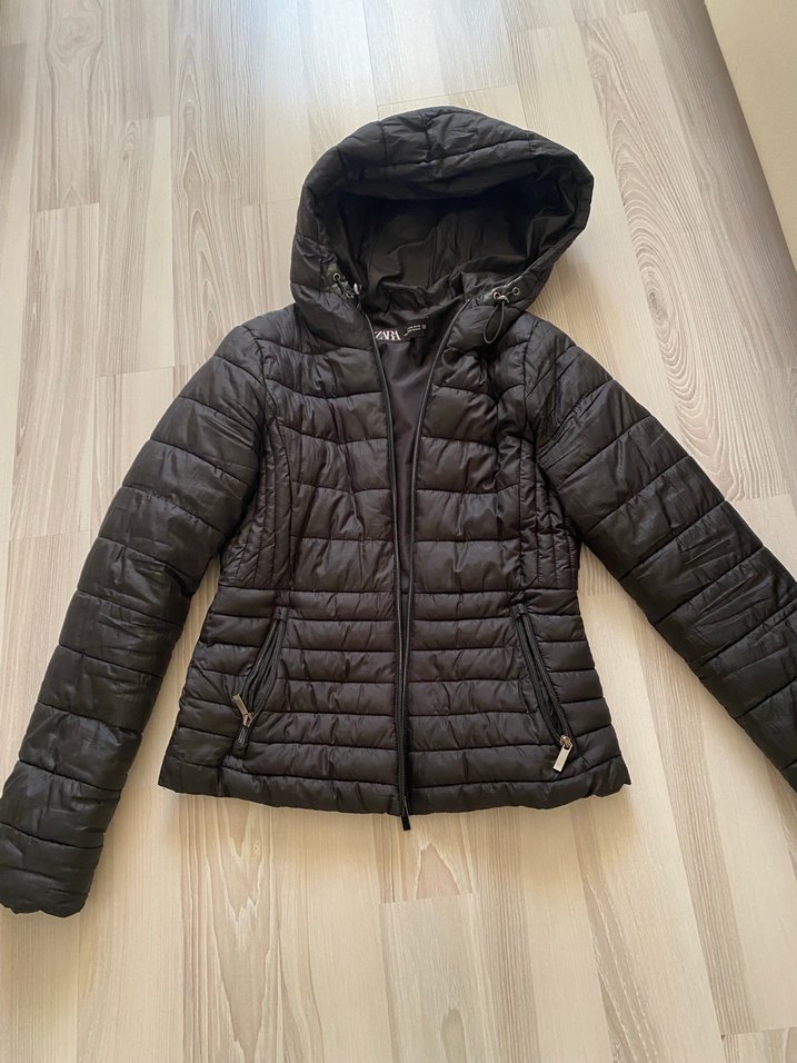 Fermuarlı ve kapüşonlu, siyah renkte, normal uzunlukta, yumuşak ve sıcak kumaştan yapılmış kadın kışlık mont. Sokak stiline uygun, rahat kesim.