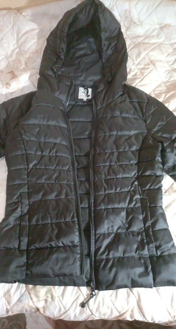 Bu siyah kapüşonlu kışlık mont, fermuarlı önü, uzun kolları ve notched lapel yaka ile rahat ve şık. Midi boy ve sıcak tutan dokusu ile trend sokak stili için uygun.