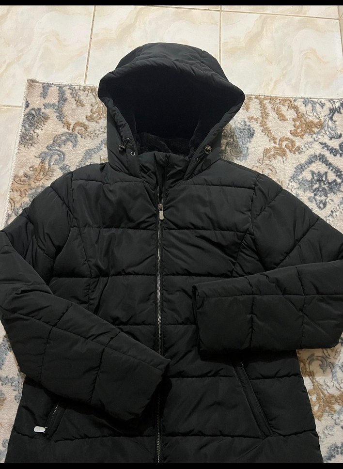 Siyah kapüşonlu, uzun kollu ve ince kesim kadın kışlık mont. Yumuşak ve sıcak tutan kumaştan, zipli ve sokak stiline uygun.