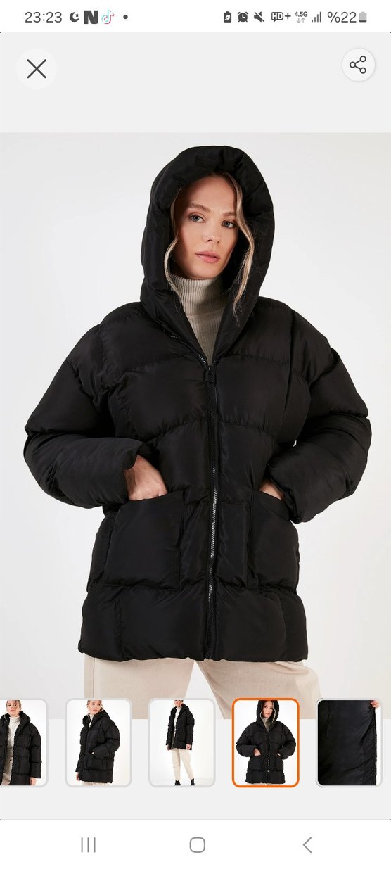 Siyah Kapüşonlu Kadın Kışlık Mont