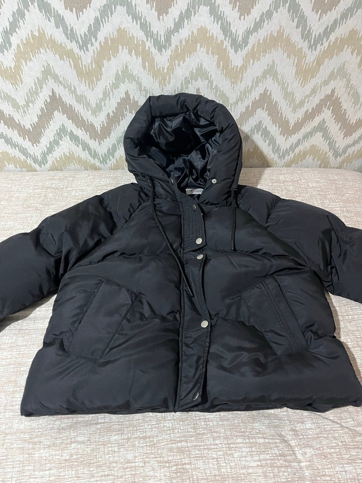 Siyah Kapüşonlu Kadın Kışlık Mont