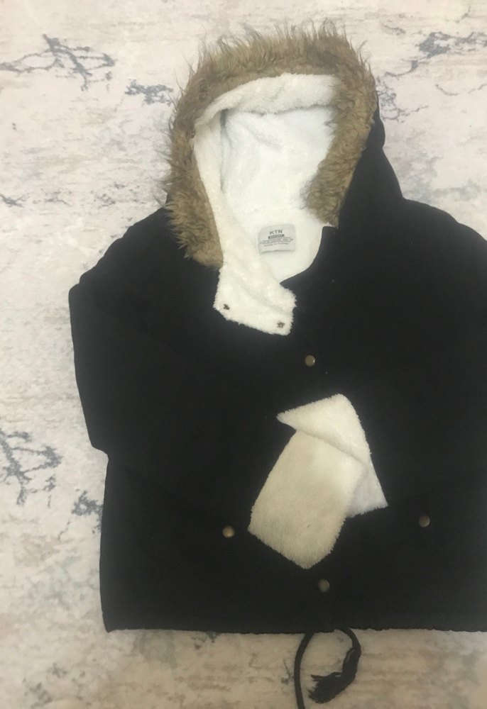 Siyah renkli, kapüşonlu ve kürk detaylı kadın kışlık mont. Midi boy, bol kesim ve uzun kolludur. Sade desensiz, rahat ve sıcak tutar.