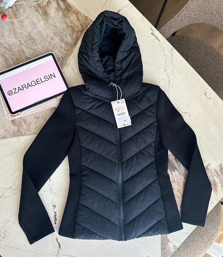 Siyah, kapüşonlu, yüksek yakalı, fermuarlı kadın kışlık mont. Uzun kollu, sokak modası ve athleisure tarzını birleştirir. Yumuşak ve sıcak kumaştan yapılmıştır.
