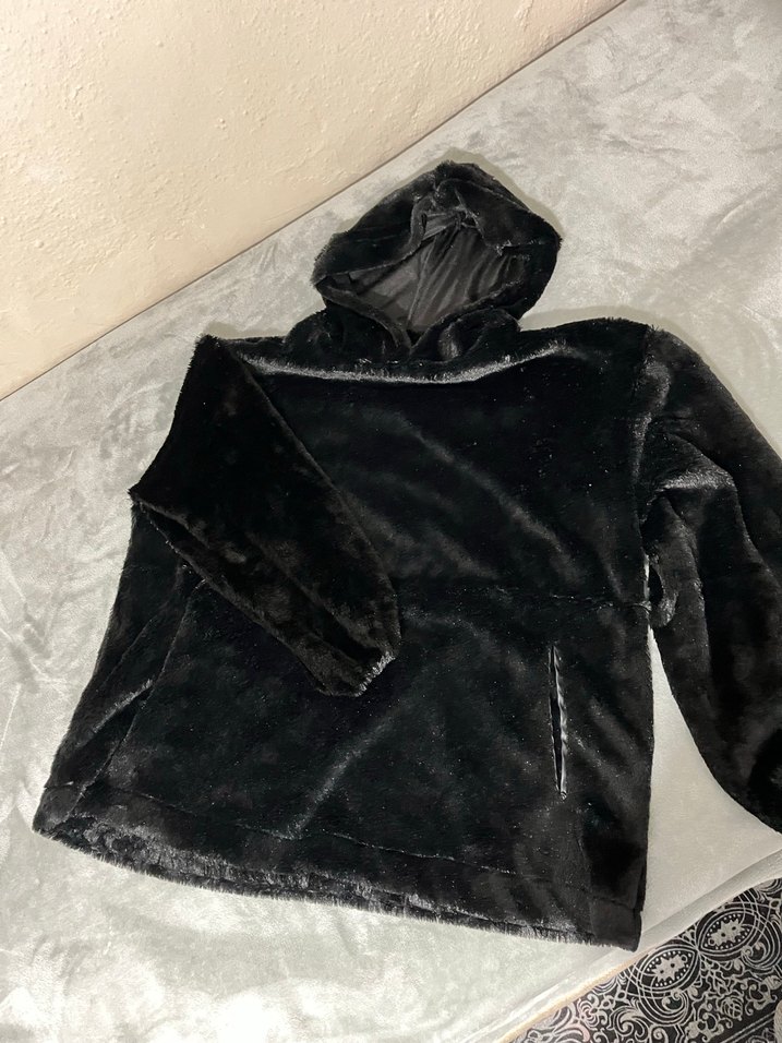 Siyah Kapüşonlu Kadın Peluş Sweatshirt