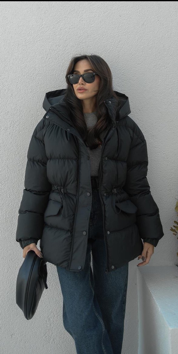 Siyah Kapüşonlu Kadın Puff Mont
