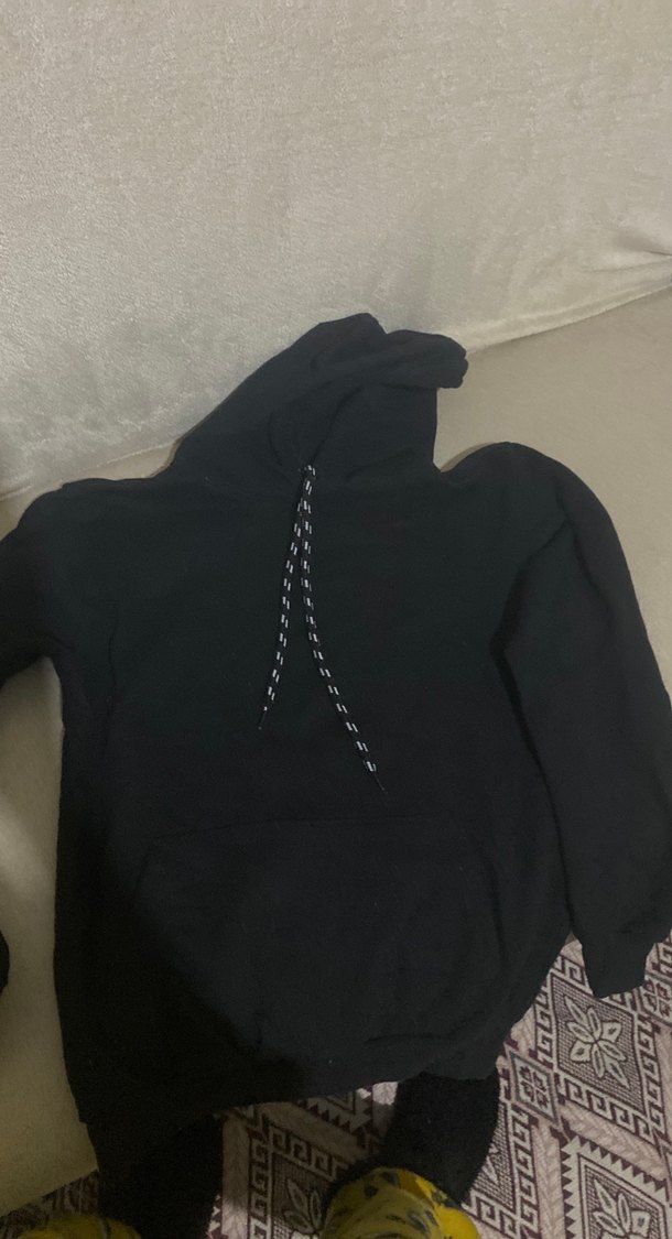 Siyah, uzun kollu ve kapüşonlu bu kadın sweatshirtü, rahat ve sıcak kumaştan üretilmiştir. Günlük kullanım için uygun, şık ve sportif bir tasarıma sahiptir.