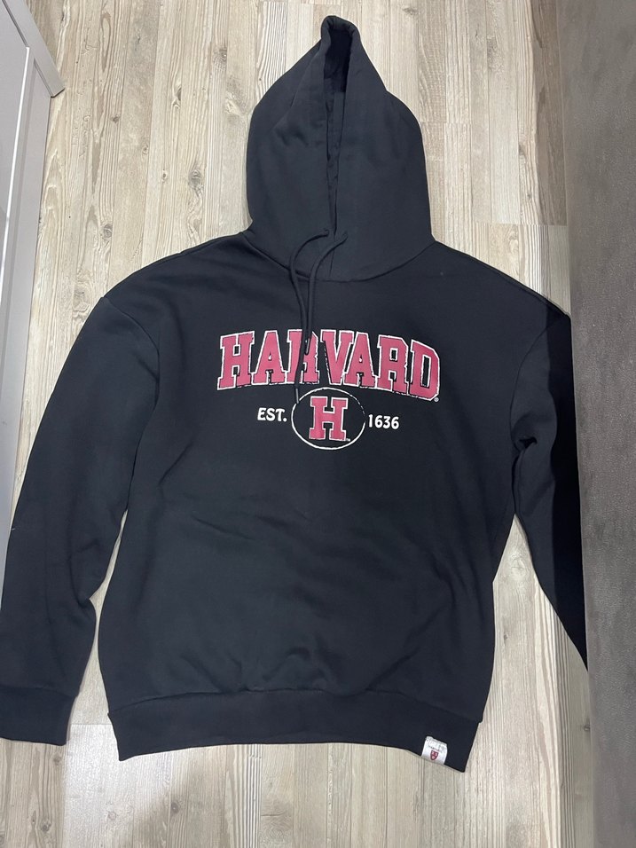 Siyah kapüşonlu sweatshirt, bol kesim ve uzun kollu, yumuşak ve sıcak kumaştan. Üzerinde Harvard baskısı bulunur, spor ve günlük kullanıma uygun.