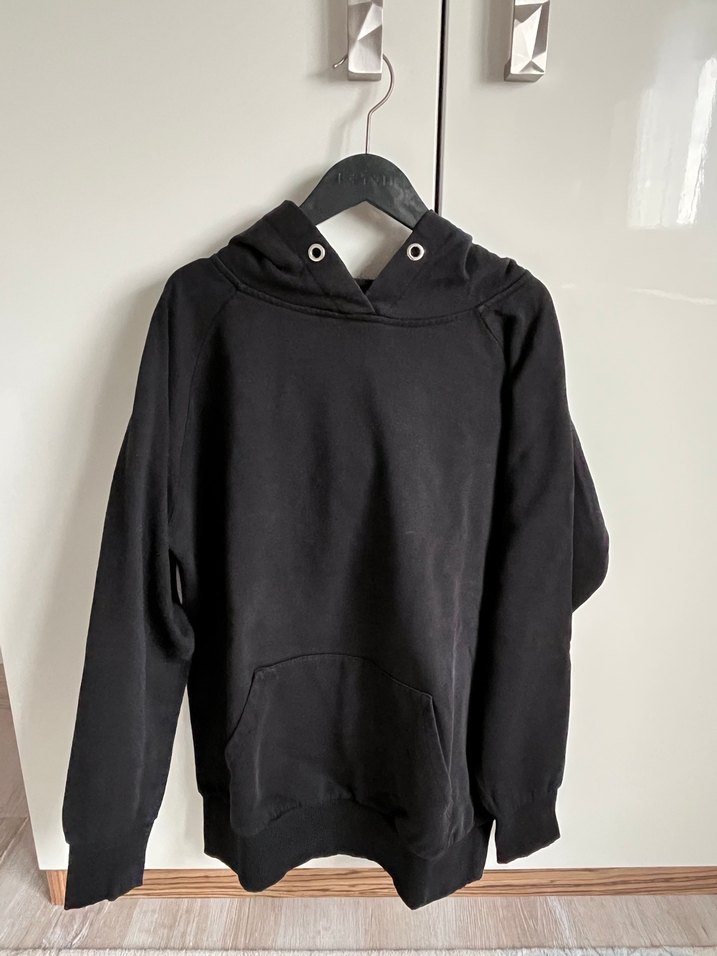 Siyah kapüşonlu sweatshirt, bol kesim ve uzun kollu. Yumuşak ve sıcak kumaştan, normal midi boyunda ve sade tasarımlı. Günlük kullanıma uygun.