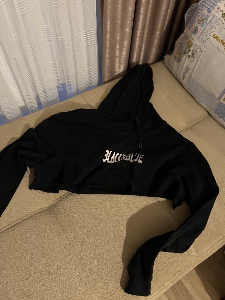 Siyah kapüşonlu, uzun kollu, vücuda oturan kesime sahip, önünde baskılı detay bulunan ipeksi dokulu sweatshirt.