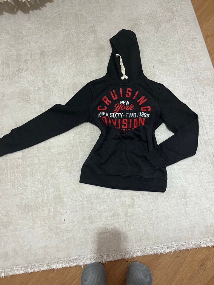 Siyah Kapüşonlu Kadın Sweatshirt